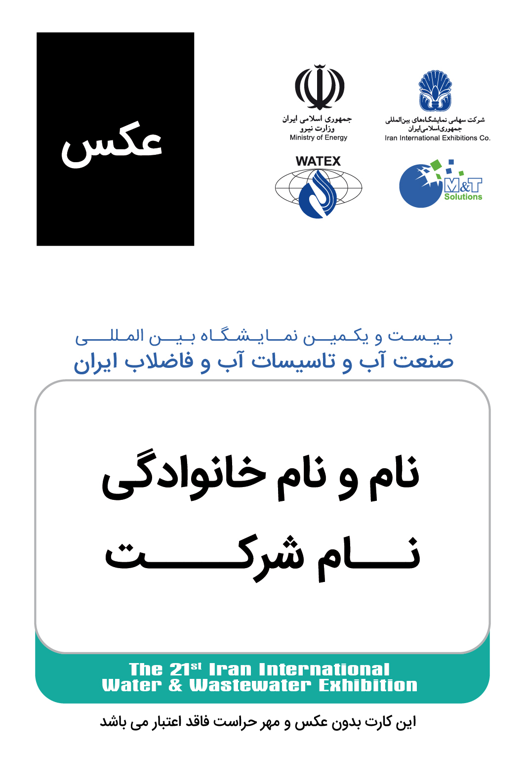 مشارکت محترم، لطفاً براساس نمونه کارت غرفهداران که بر روی سایت مشخص شده است، کارتهای افرادی که در نظر دارید در ایام برگزاری نمایشگاه در داخل غرفه به عنوان نماینده آن شرکت حضور یابند را بهصورت رنگی و در ابعاد ۱۳×۹ سانتیمتر برشخورده آماده فرمایید و در داخل پاکت دربسته با درج نام شرکت بر روی پاکت، در تاریخ 8 و 9 آذر ماه به ستاد برگزاری واقع در سالن 40 تحویل دهید.